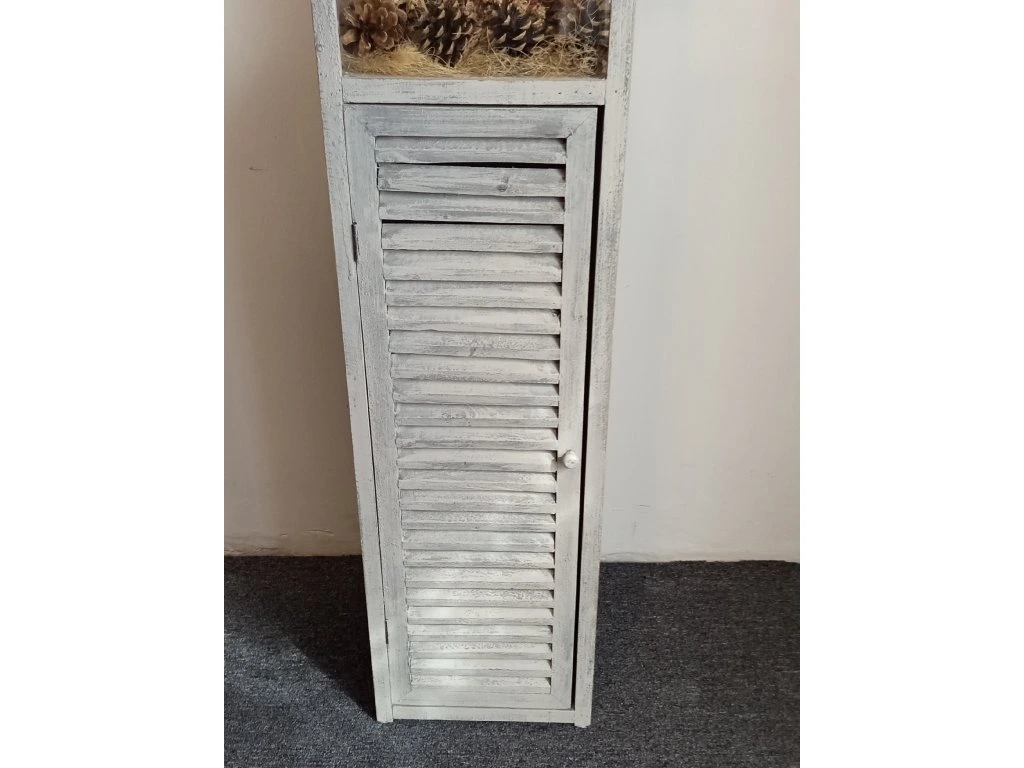 Provence skříňka s lucernou a dekorací. Rozměry: výška 118,5cm/šířka 29,5cm/délka 29,5cm váha 4,7kg.